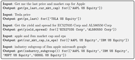 Unlike popular chatbots like Bard or ChatGPT, BloombergGPT is not a standalone service. Instead, it is integrated into Bloomberg Terminal (BT) a subscription-based platform that offers access to an extensive array of financial data, analytical tools and more. This integration allows Bloomberg’s customers to utilize natural language queries with BloombergGPT to access BT’s financial data and tools, simplifying the process compared to using complex Bloomberg Query Language (BQL) commands, as illustrated below. BQL is a specialized query language that Bloomberg developed to access and analyze financial data on the Bloomberg platform.