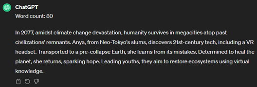 ChatGPT’s advantage: It incorporates two important pieces of information from the original text that provide additional context (Neo-Tokyo’s slums and 21st-century technology).