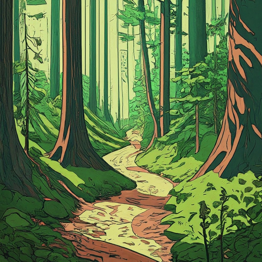 This enchanting forest pathway invites us to immerse ourselves in nature’s beauty.”