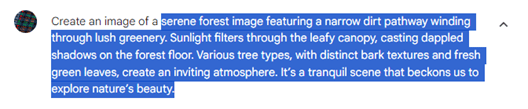 To create a more concise prompt for AI image generation using Gemini, we refine Copilot’s description into a short paragraph format.